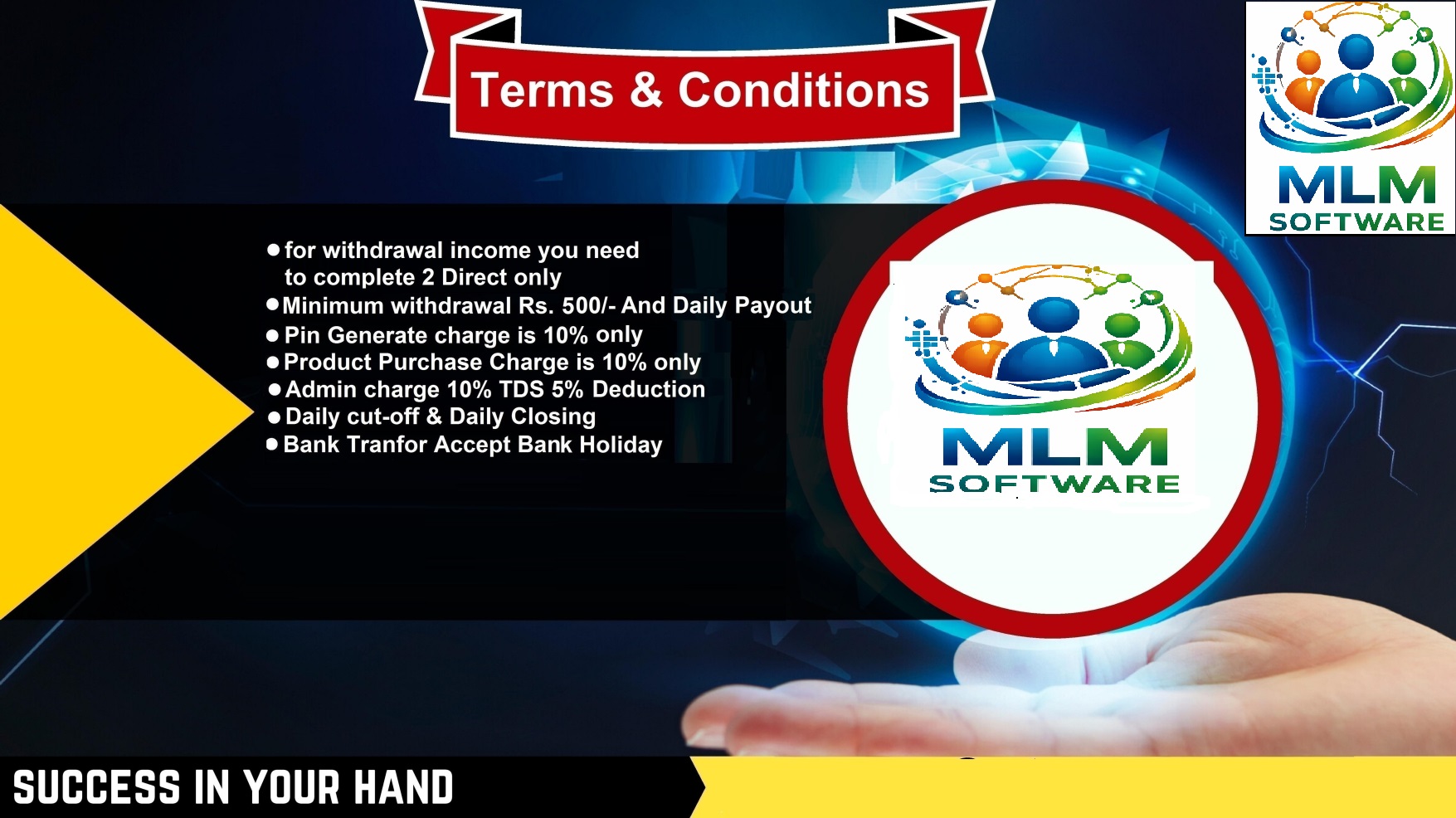 MLM Software is a Marketing Company. It aims to bring happy and prosperous life to millions of people by forming meaningful, long lasting and mutually rewarding business association.