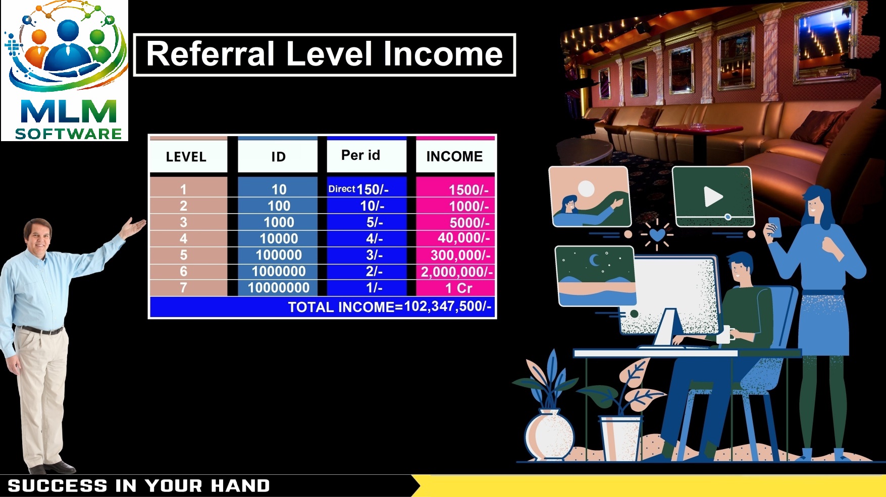 MLM Software is a Marketing Company. It aims to bring happy and prosperous life to millions of people by forming meaningful, long lasting and mutually rewarding business association.